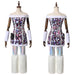 The costume features a vibrant color scheme of blue and pink, a faux-fur trimmed vest, and a matching dress. High-quality materials ensure a comfortable fit, with details like themed patterns and durable stitching for accuracy and longevity.