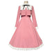 The costume features a deep blue pleated dress with a matching bolero jacket, accented with delicate white lace and ribbon details. The ensemble is crafted from high-quality, comfortable fabrics to ensure a premium look and feel.
