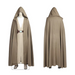 The comprehensive set includes a long-sleeved linen-look tunic, flowing hooded robe with a weathered finish, matching pants, and a wide leather-like belt with a metallic buckle. The design focuses on comfort and accuracy, allowing for ease of movement while maintaining the character's distinct aesthetic from the movie.